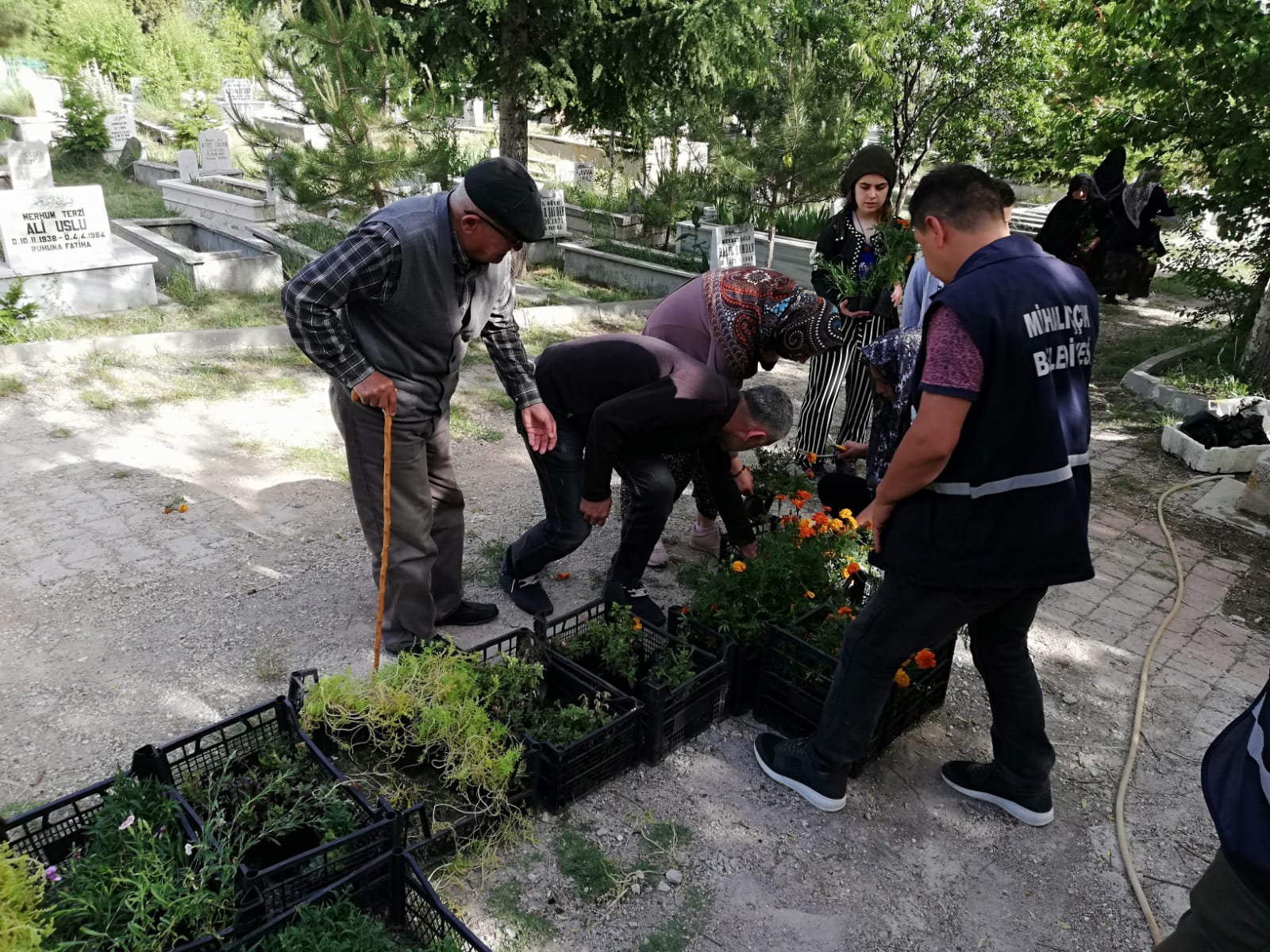 Mihalıççık Belediyesi ve Eskişehir Büyükşehir Belediyesi tarafından yürütülen ortak çalışma ile bayram vesilesiyle yapılacak kabir ziyaretleri için İlçe mezarlığında çiçek dağıtımı gerçekleştirildi.