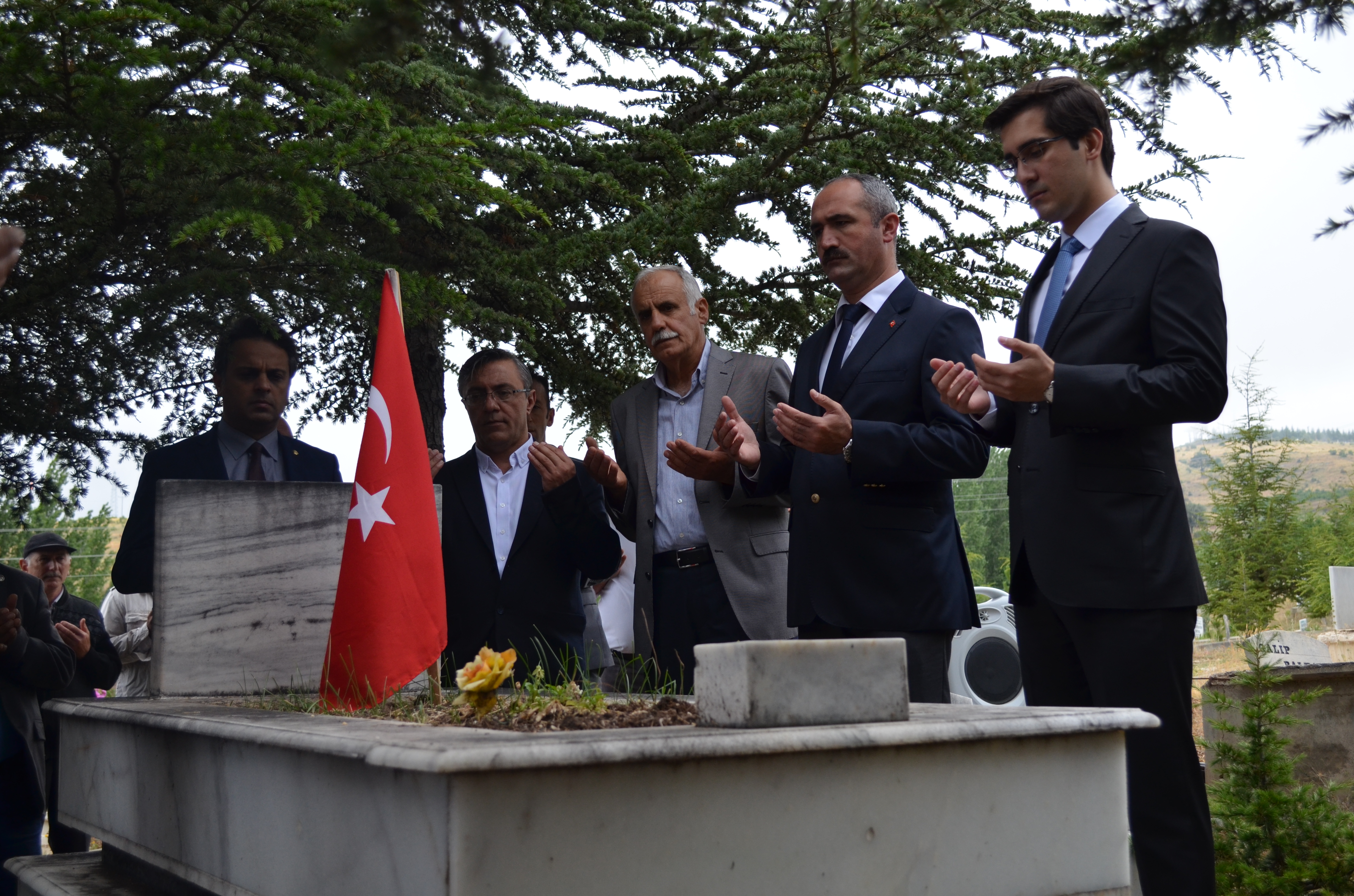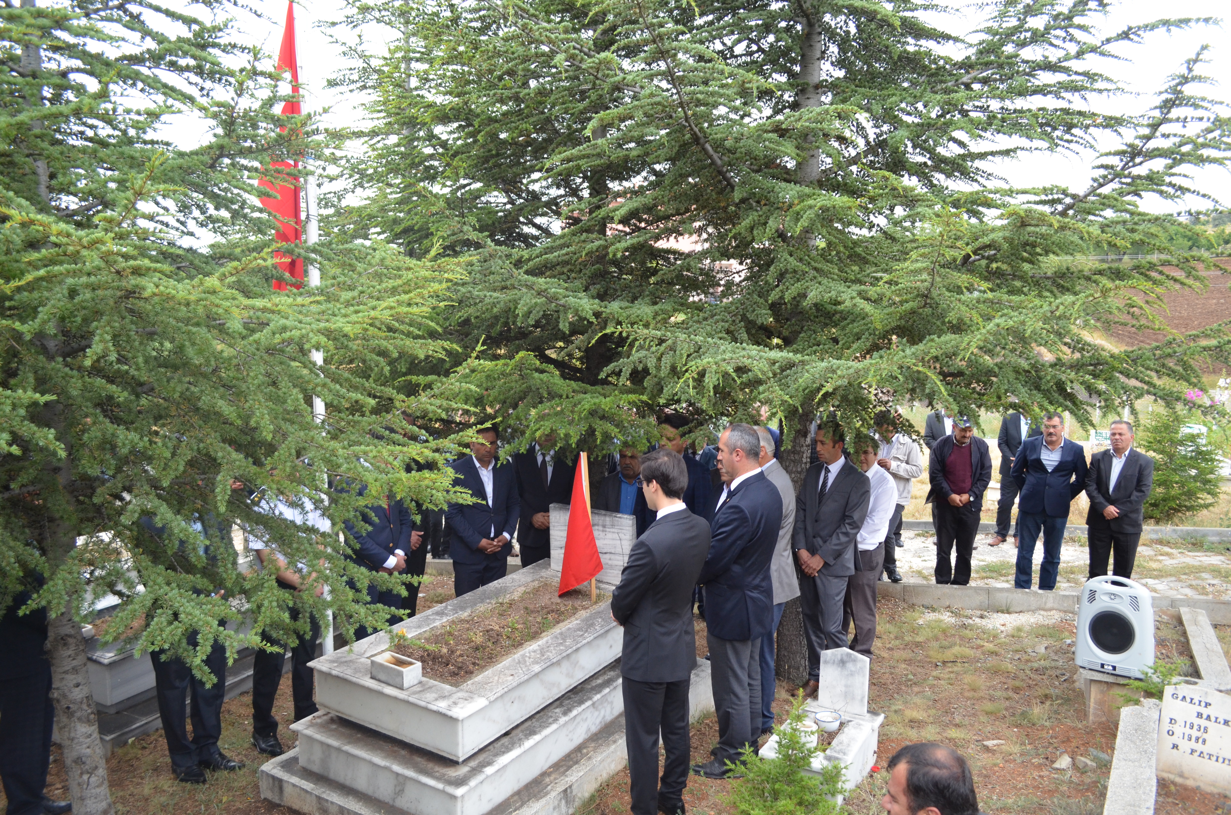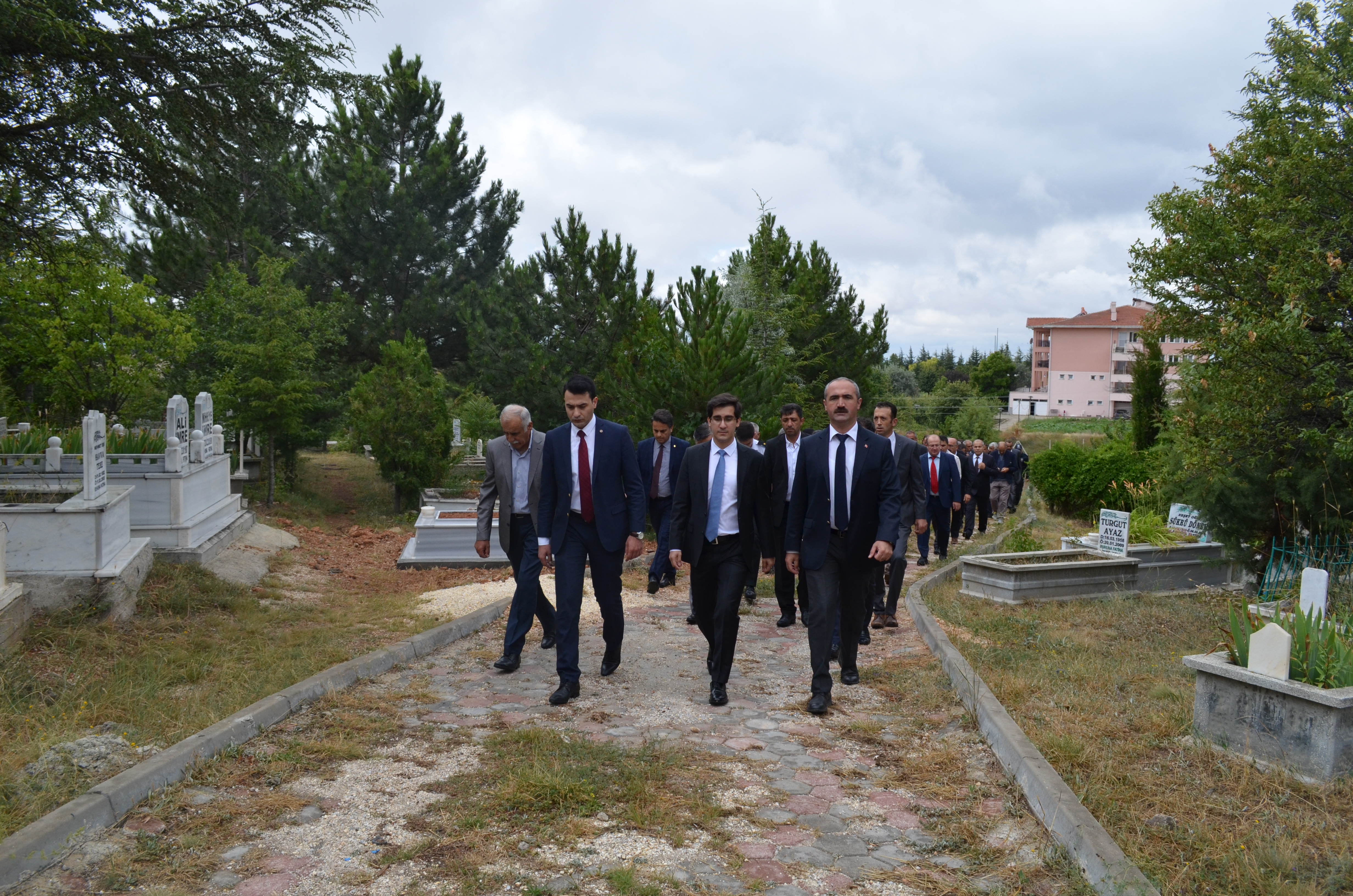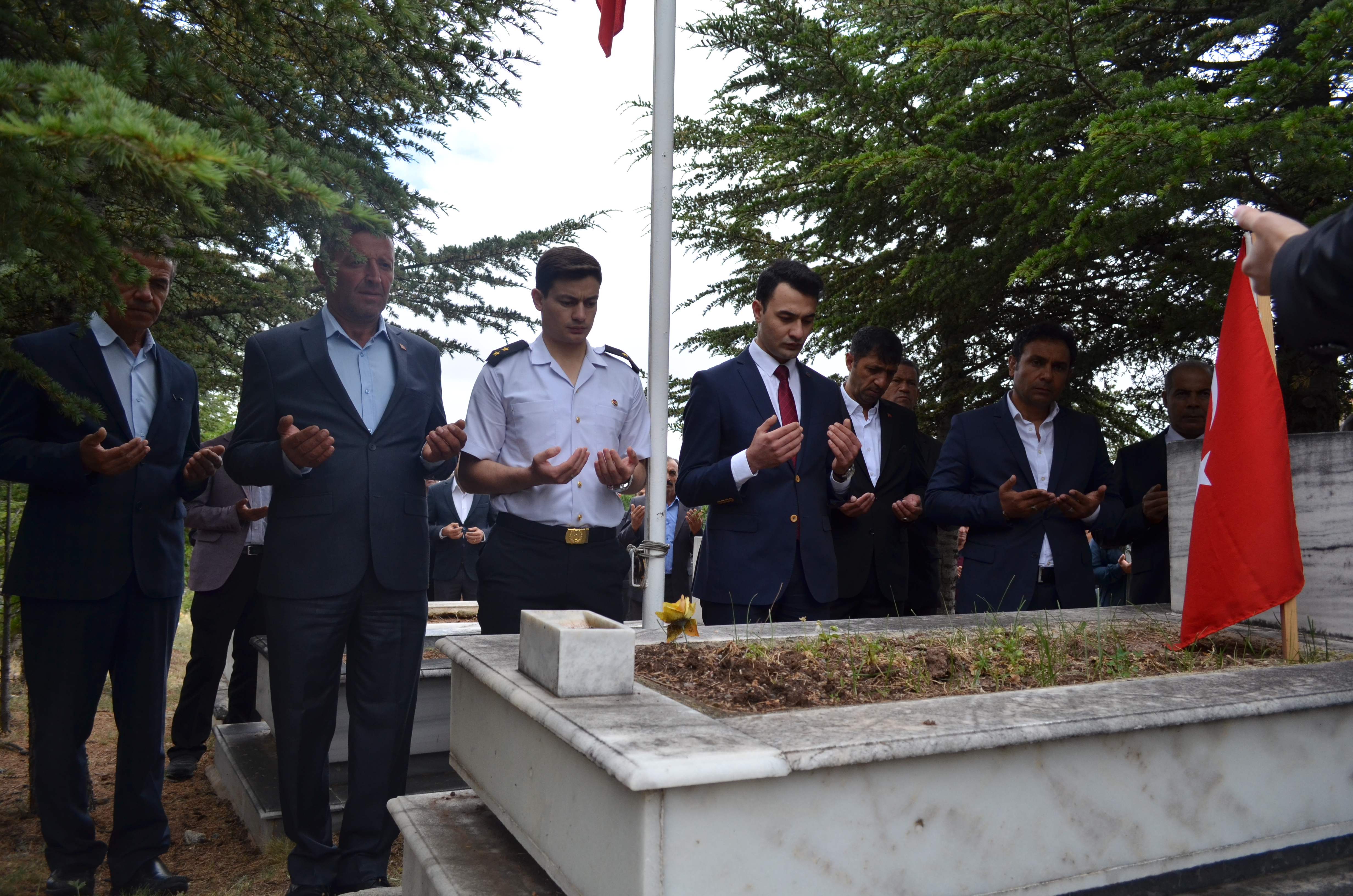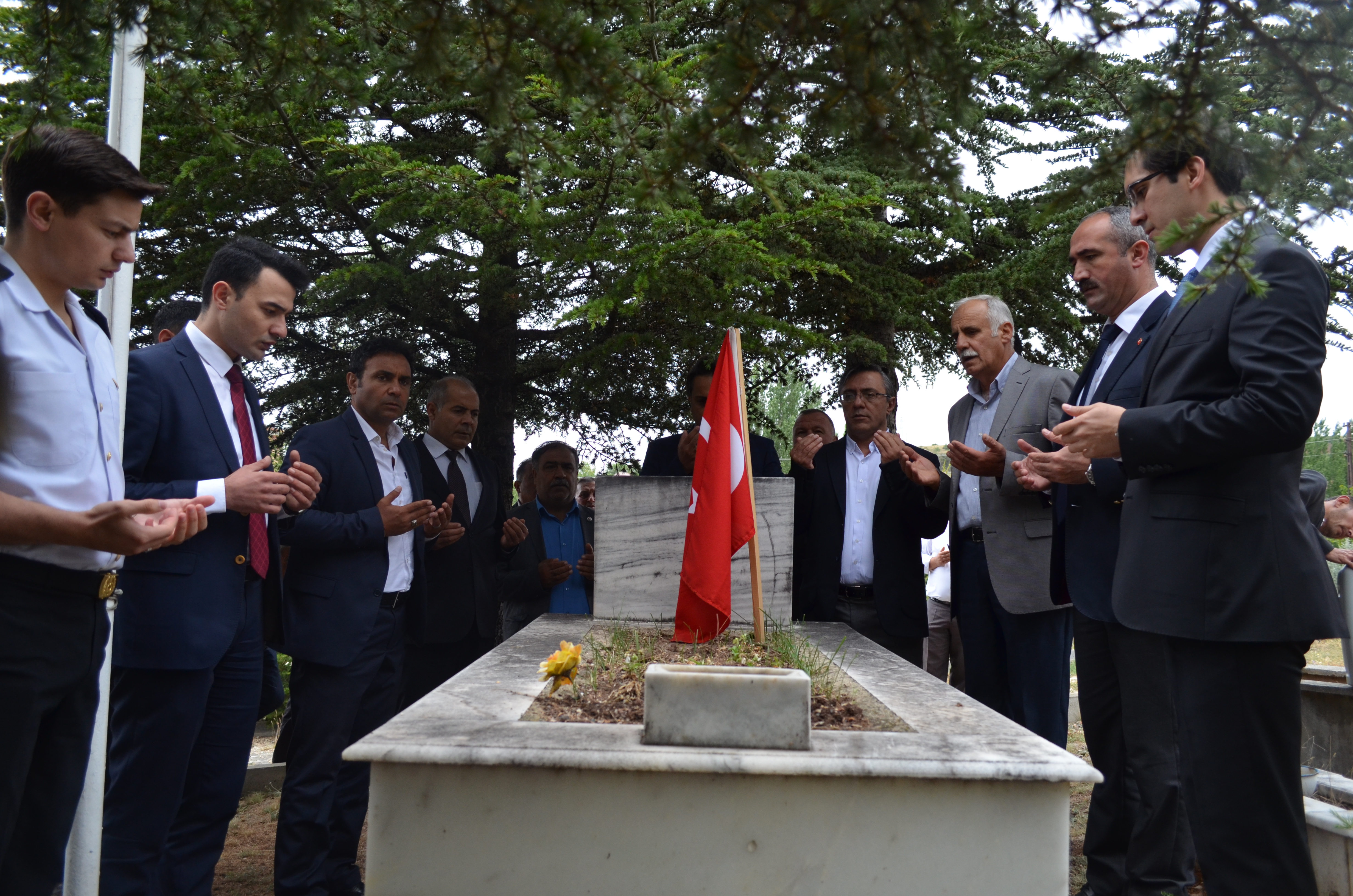 Kaymakamlık önünde yapılan törenin sonrasında, ilçe mezarlığımızda bulunan Şehitlerimiz ziyaret edildi, akabinde gazi ve şehit aileleri ziyaret edildi.